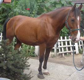 Beníčka jsme koupili v roce 2002 z Brna od jedné slečny. Je to skvělý kůň a výborný učitel. Je přiježděn v anglickém i westernovém stylu. Beník miluje děti a pozná, když veze nějaké na zádech. Také pozná když někdo neumí dobře jezdit a pak ho začne školit. Dotyčný jezdec z toho usuzuje že neposlouchá, ale v momentě kdy je dána správná pobídka, koník zareaguje a je vyhráno. Beníček byl u nás 3,5 roku a loučili jsme se s ním velmi těžko. Po narození Elinky již nebylo tolik času na práci kolem koní a na ježdění už vůbec ne, takže jsme mu vybrali novou rodinu v jihozápadních Čechách. Nyní držím palce paní, která pravděpodobně odkoupí "druhou polovinu", aby všechno klaplo a Beníček jí dělal jenom radost. A všem lidem, kteří si koně kupují jen jako živé kolo na ježdění doporučuji, aby si nejdříve pročetli odbornou literaturu a trochu se vzdělali, aby pak následkem jejich chování nebyl ohrožen život tvora, který je na nich závislý. Pokažené kolo jde totiž vyhodit, ale pokaženého koně napravujete jen velmi ztěžka, většinou je prodán a navíc mu bývá dávano za vinu to, co pokazil někdo úplně jiný. Svou hloupostí a omezeností si dotyčný člověk vůbec neuvědomuje, že je na vině jen on sám. Navíc toto je cesta ke koňskému handlíři a od koňského handlíře na jatka, zvláště pokud se dostane do stejně nezkušených rukou. Co se týče přístupu ke koni a pochopení vztahu člověk-kůň, doporučuji pročíst literaturu od MVDr. Norberta Záliše, Montyho Robertse apod. Pokud si chcete prohlédnout další fotografie, podívejte se do společné fotogalerie.