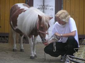 Zde je foto Popelky těsně před odjezdem k novým majitelům (na fotce s novou hodnou paničkou). Pokud si chcete prohlédnout další fotografie, podívejte se do společné fotogalerie. |