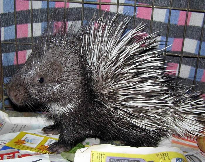 Obecné info: Vzhled: Způsob života: Naše Vendulka: Naše Vendulka, je dikobrazí samička, která se narodila v červnu 2016. Při odchodu propíchla na rozloučenou ruku svému prvnímu majiteli, tak jsme alespoň věděli, co nás čeká, když nebudeme dávat pozor.Když jsme ji jako dvouměsíční přivezli domů, snažila se nás probodnout kdykoliv jsme šli okolo. Měli jsme ji prvních 14 dní ve velké kleci doma, aby si na nás zvykla. Jako stezka odvahy vypadaly naše noční cesty na WC kolem klece, protože v rozespalosti stačilo lehce zavrávorat a přiblížit se na kratší vzdálenost ke kleci, a v tu ránu ostny trčely skrz drátěná oka 2 cm od naší nohy. To byl člověk hned vzhůru. Naštěstí jsme to přežili :D a nikdo z nás nemusel léčit rány. Vendulka žila potom přes zimu v betonovém chlívku s mříží místo dveří, aby dobře viděla ven na dvůr a zvykala si na běžný ruch. Hodně jsme na ni mluvili a věnovali se jí, a tak poznala, že máme zvířátka rádi a myslíme to s ní dobře. Postupně se k nám začala točit i čelem, a pak si od nás začala brát z ruky i různé dobroty. Ve věku jednoho roku se stěhovala do nového krásného venkovního výběhu a když jsme se jí pokoušeli postrčit do klece s kolečky, abychom ji mohli převézt, zabodla během setiny vteřiny tři ostny tak hluboko do tvrdého dřeva, že jsme měli problém je vytáhnout. Dovedu si dost dobře představit, jak hluboko by ostny vězely, pokud by místo dřevěného prkna byla moje noha.... Po převozu do nového krásného venkovního výběhu se začala bavit tím, že strašila chrastěním zakrslé minikozy a kachny indického běžce. Velmi se tím bavila, jak před ní utíkají. O měsíc později, už si ji krmily i malé tříleté děti, samozřejmě přes plotové panely s oky. Nikdy se nestalo, že by útočila, ale samozřejmě je potřeba dávat si pozor, protože u zvířete nikdy nevíte, co může udělat. Když stojí na zadních a žebrá piškoty, vypadá jako takové velké tlusté morče s ostny na zádech.Vendulka miluje vodu a vyloženě se vyžívá ve sprchování hadicí. Studená voda jí vůbec nevadí. Miluje saláty, kukuřici, papriky, jablka, švestky, větve, listí, ale zbaští i psí granule, mrkev, petržel, králičí granule bez léku, sladový květ, ječmen, pšenici, pampeliškové listy i květy atd... Ovšem nejraději ze všeho má dětské piškoty :) Edit 2025: Tak jsme se dozvěděli, že je Vendulka možná dikobraz srstnatonosý, nebo obecný, nebo kříženec a že už to v ČR nikdo nepozná. Sameček Toníček, kterého jsme k Vendulce pořídili, je dikobraz srstnatonosý. V každém případě jsou všichni naši dikobrazi otužilí a zdraví :) Na prodej samička dikobraza narozená 10.9.2025 cena 9500,- Kč (při zájmu pište na dvornizookoutek@seznam.cz, mob. +420731407080) odkaz do foto a video alba KLIKNĚTE SEM Tady je Vendulka po příjezdu od původního majitele, ve věku 2 měsíce. Vidíte ten výraz? Jako by říkala, "Přibliž se a já tě probodnu" :D