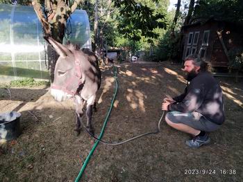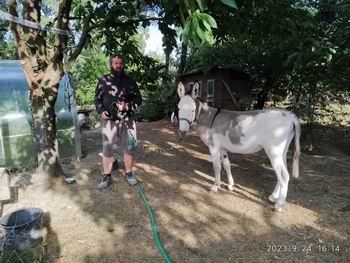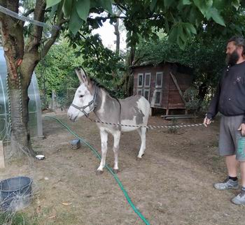 hřebec původem ze ZOO Sedlec, nar. 1.6.2021, barva šedo-červeno-bíle strakatá s lucernou/ Skewbald, oslí kříž