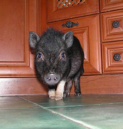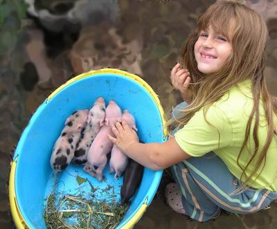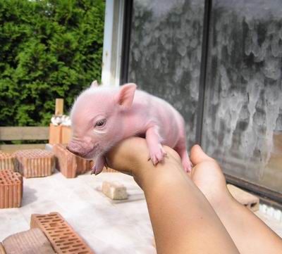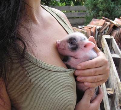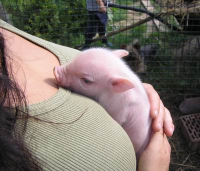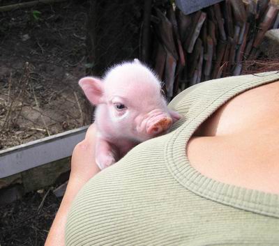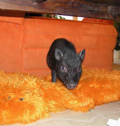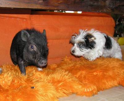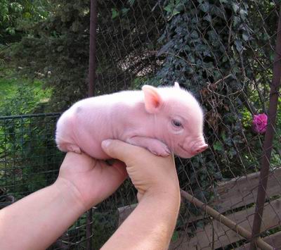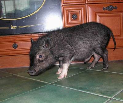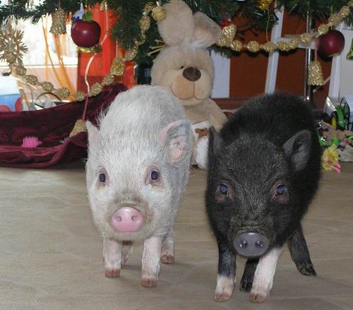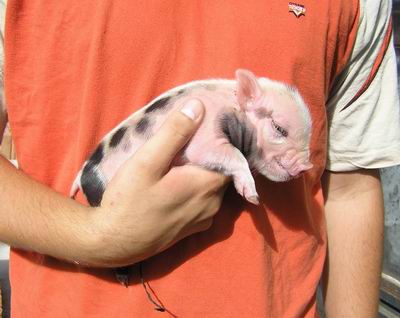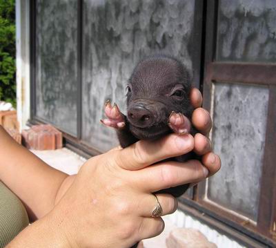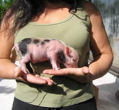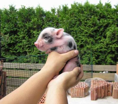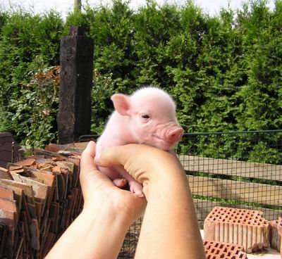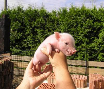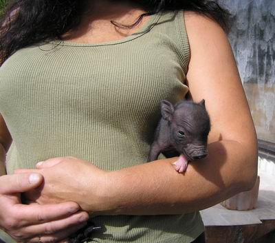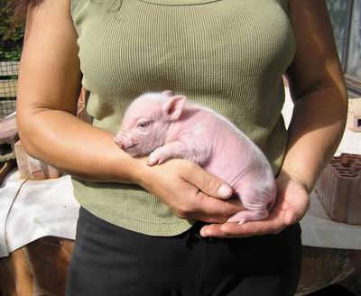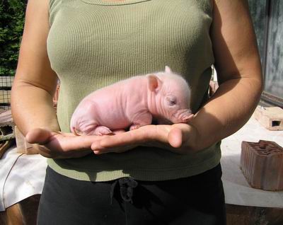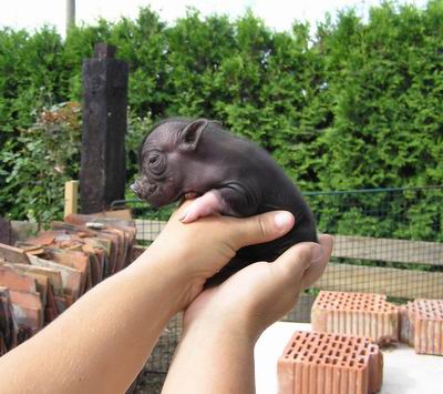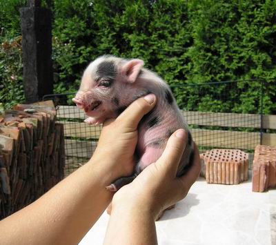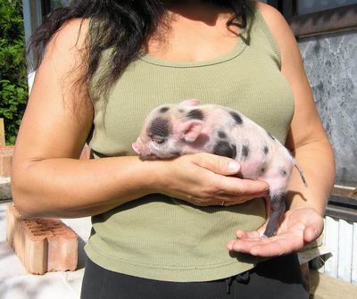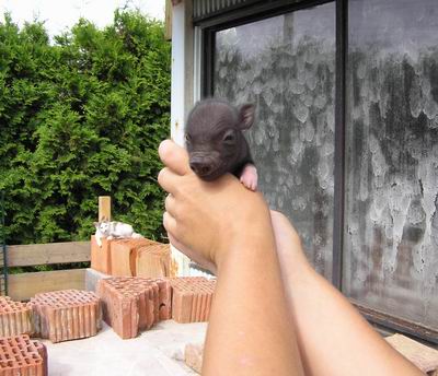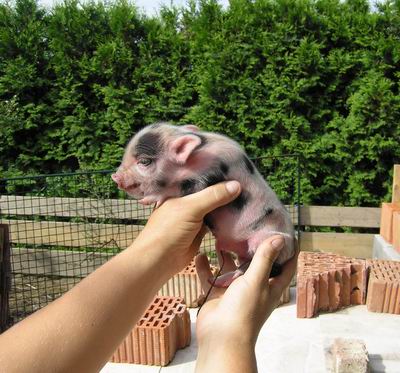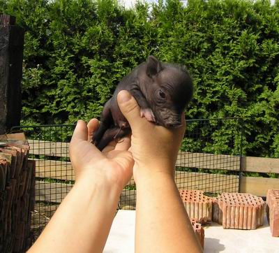Rodiče mají váhu 12kg Chrochtík nar. 06/2009 a 16 kg Žofie nar. 03/2009 (váhy k 08/2010), na fotce pro porovnání s malou kočkou. Prasátka rostou do dvou let, takže ještě trošičku vyrostou, ale teď ke konci růstu už jen minimálně.