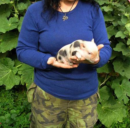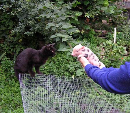 Vlevo je taťulda Chrochtík, kaneček, vpravo mamča prasnička Binky.