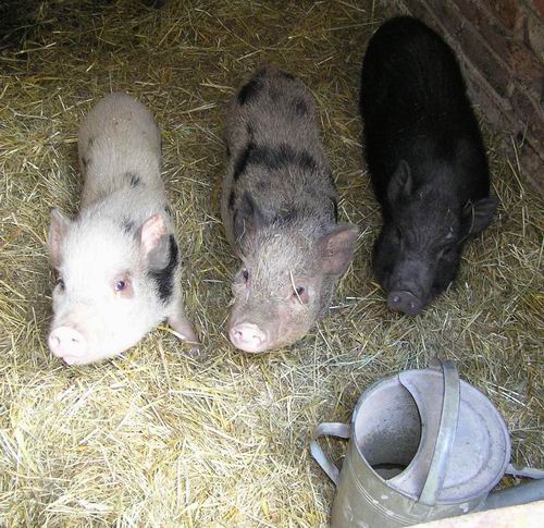 Selátka miniprasátek se narodila 4. a 5.9.2014. Narodilo se celkem 9 selátek - černé Terezce 5 (2 holčičky a 3 kluci) a puntíkaté malé Barušce 4 (2 kluci a 2 holčičky). Otcem obou vrhů je malý Chrochtík z vrhu 9 již prodaný, matkami jsou malá Baruška z vrhu 10 již prodaná a Terezka po Montym a Blackii., fotky vše rodičů jsou zde pod tímto textem. KOUPÍ SELÁTEK PODPOŘÍTE OSTATNÍ ZVÍŘÁTKA V NAŠEM ZOOKOUTKU, závislá na prodeji odchovů. Při zájmu volejte na 731407080, nebo pište na dvornizookoutek@seznam.cz |