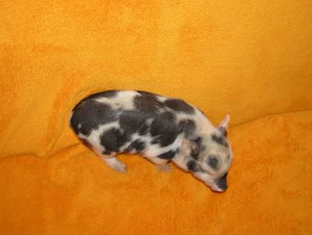 Selátka miniprasátek se narodila 6.3.2021. Otec je Pepíček (vrh 38), matka Růženka (vrh 35), rodiče jsou ze skupinky nejmenších chovných. Váží v dospělosti 15 a 13 kg. |