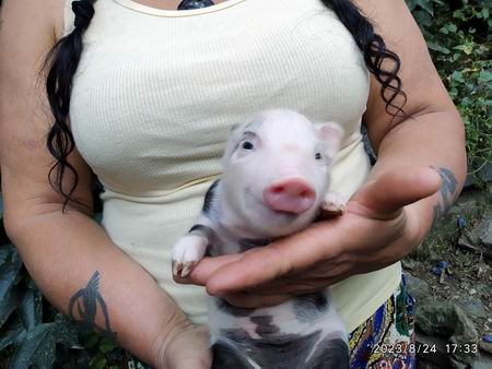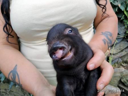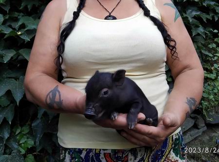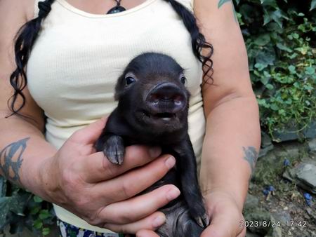 Selátka miniprasátek se narodila 9.8.2023, jsou čipovaná. Otec je Virgil (vrh 67, maličký, nadějný, v 1,5 roce váží jen 5 kg, stále v růstu, v dospělosti počítám kolem 11 kg), matka Karla (vrh 61), váha 19 kg. Rodiče jsou kvalitní miniprasátka, patří k nejmenším v ČR. Odchovy mají cenový rozptyl podle předpokládané velikosti v dospělosti. Čím je vyšší předpoklad, že bude miniprasátko v dospělosti menší, tím vyšší je jeho cena. Nedokážu ale přesně určit, jak které vyroste.