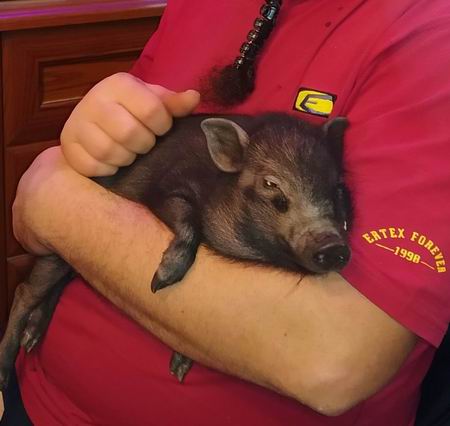 Selátko miniprasátka se narodilo 30.9.2024. Otec je Tapírek 4 roky, matka Berta II. 2 roky. Berta bohužel zemřela při tomto svém prvním porodu. U mrtvé maminky v boudě jsme našli 1 živé selátko, černou holčičku. Bránila se, kousala a kvičela první tři týdny dokrmování s takovou vervou, že mne to stálo obrovské úsilí, spánek a nervy, ale povedlo se. Ve chvíli, kdy dělám tuto stránku, má už malá Eliška 5 měsíců a zatím bydlí s námi doma, protože venku je zima. Já tak sbírám zkušenosti s chovem prasátka v bytě. Zároveň jsem si na vlastní kůži vyzkoušela, jak funguje karma. Den před narozením Elišky jsem totiž odmítla ručně dokrmené několikaměsíční prasátko s tím, že to bude nějaký "podražený zmetek". Karma, zdarma. KOUPÍ SELÁTEK PŘISPĚJETE NA NÁKUP KRMIV PRO OSTATNÍ ZVÍŘÁTKA V NAŠEM ZOOKOUTKU. DĚKUJEME VÁM!!! |