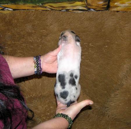 Za tímto vrhem je 15 let mé předchozí práce ve šlechtění. Selátka miniprasátek se narodila 10.2.2025. Otec je Virgil (vrh 67) jeden z nejmenších kanečků na světě, matka Žofie II. (vrh 70) maličká a ve 2,5 letech 12 kg maličká velmi nadějná prasnička. Velikost rodičů je zohledněna ve vyšší ceně. Přesto, že je předpoklad opravdu malých velikostí a jedná se o výběrové spojení po výběrových rodičích ze šesté (po matce) a páté (po otci) generace u mne narozené, může se stát, že bude některé selátko větší , než rodiče. Nejdříve za 3 roky budu moct přesněji odhadnout, jak budou odchovy velké.