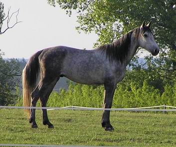 Narozen 06.03.2000. Samík nás zaujal na první pohled, byl komunikativní, zvědavý, poslušný a líbivý. Původně jsme si chtěli koupit jen jeho, ale potom jsme ho vzali i s jeho vrstevníkem Symbolkem. Jeho babička je chovná starokladrubská bělka a na Samovi to zanechalo stopy. Jinak od malička má sklony k cirkusovým kouskům, dokáže se ohnout jako luk a šprajcnout se ve stájových dveřích kdy