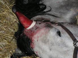 a oškrábal a vyříznul i to co bylo v pořádku okolo, takže za 14 dní mu začalo růst to samé ale vždy na větší ploše, navíc během operace se mu tam zanesla infekce (ani se nedivím, nebudu to rozvádět), takže ucho začalo hnisat, a kromě vyhozených peněz za 2 operace jsme tam kde jsme byli. Navíc ochranný obvaz mu vydržel asi 5 minut, pak vstal, oklepal se, obvaz byl dole a začala cákat krev, veterinář už byl za horama a my zůstali s krvácejícím koněm, který na sebe nechtěl nechat šáhnout sami. Radši nebudu popisovat jak se kůň během operace budil a házel s námi po stáji (vet odešel ven, radši nepomáhal, co kdyby se mu něco stalo, z koně stříkala krev