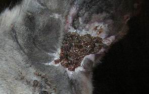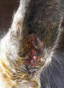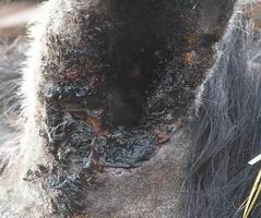 Aby toho jeho trápení nebylo málo, tak v létě 2005 mu na letní pastvině muchyňky v uchu vyďobaly místečko ze kterého sály krev a jemu na tom kousku začalo růst živé maso.