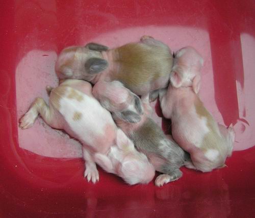 vrh narozen 21.12.2010 Madona vychovávala i přeživší sirotky po samici Manga, takže celkem 7 mláďat |