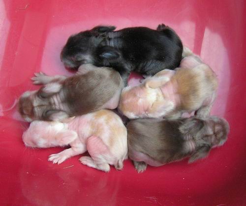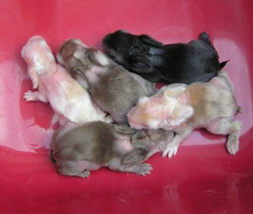 | Manga bohužel 3.1.2011 uhynula z ničeho nic (asi přehřátí, musím tu hodně topit kvůli skinečkům) a králindy jdou z venku -10°C do toho vedra tady. Plus se asi přidalo vyčerpání z kojení......... v každém případě bojujeme, žádná samice je nechce, dělám všechno možné i nemožné. |